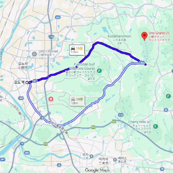 오노그랜드 컨트리클럽  고베 공항에서 차로 약 1시간 소요 오노그랜드 컨트리클럽  오노 역에서 차로 약 15분 소요